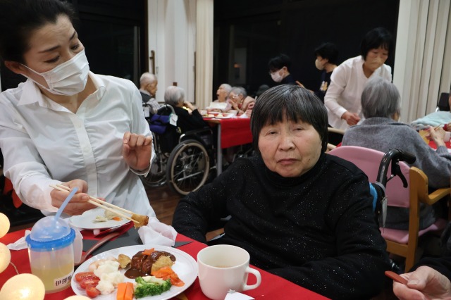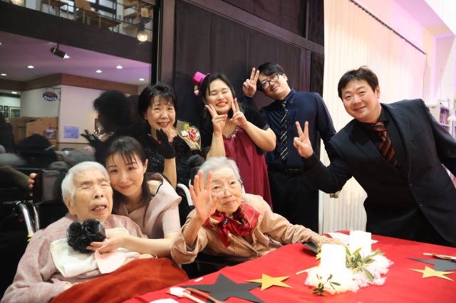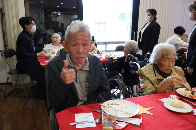 今年も、入居者様からのリクエスト曲をスタッフにて歌い、今年は、入居者様と薬剤師さんにも演奏と歌にも参加していただき、ご家族様にも聞いていただきました♪