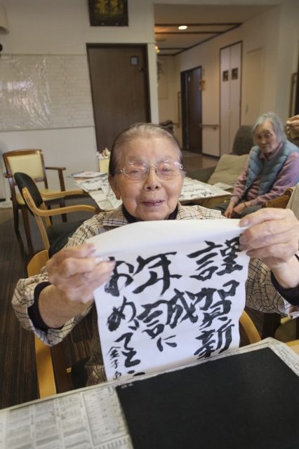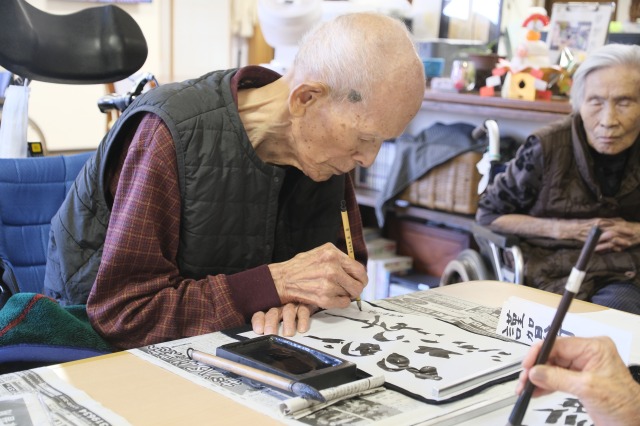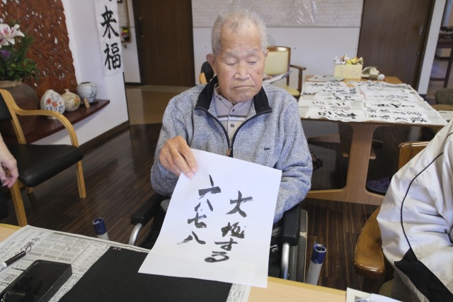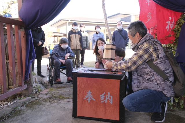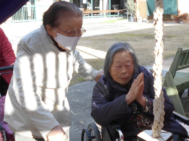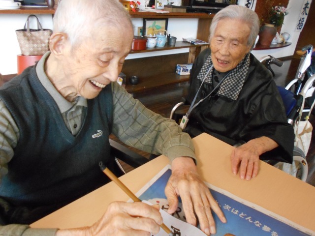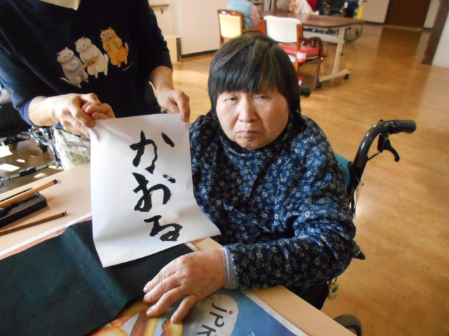 書き初めでは、個々で思う事を書いて頂き、また施設内にある、幸多明神に初詣にも行かれました♪