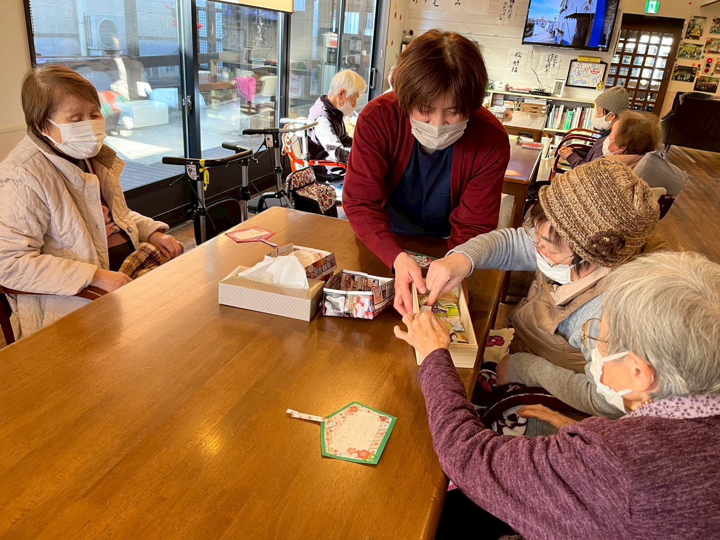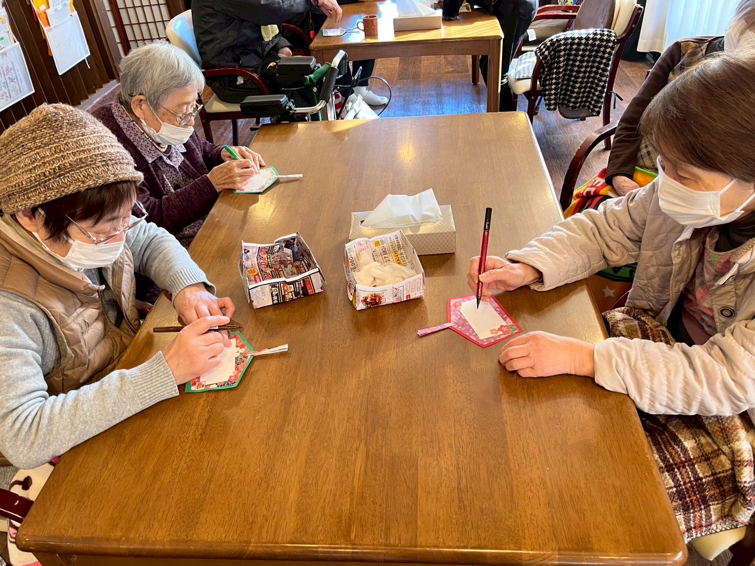燈いろのスタートは1/5月曜日からとなりました。二週間ぐらいは中庭にできた『ときの杜 幸多明神』に初詣に行きました。寒い日が多く、お参りが終わるとすぐに燈いろに戻る方が多くみえました。寒さには勝てないです(笑)