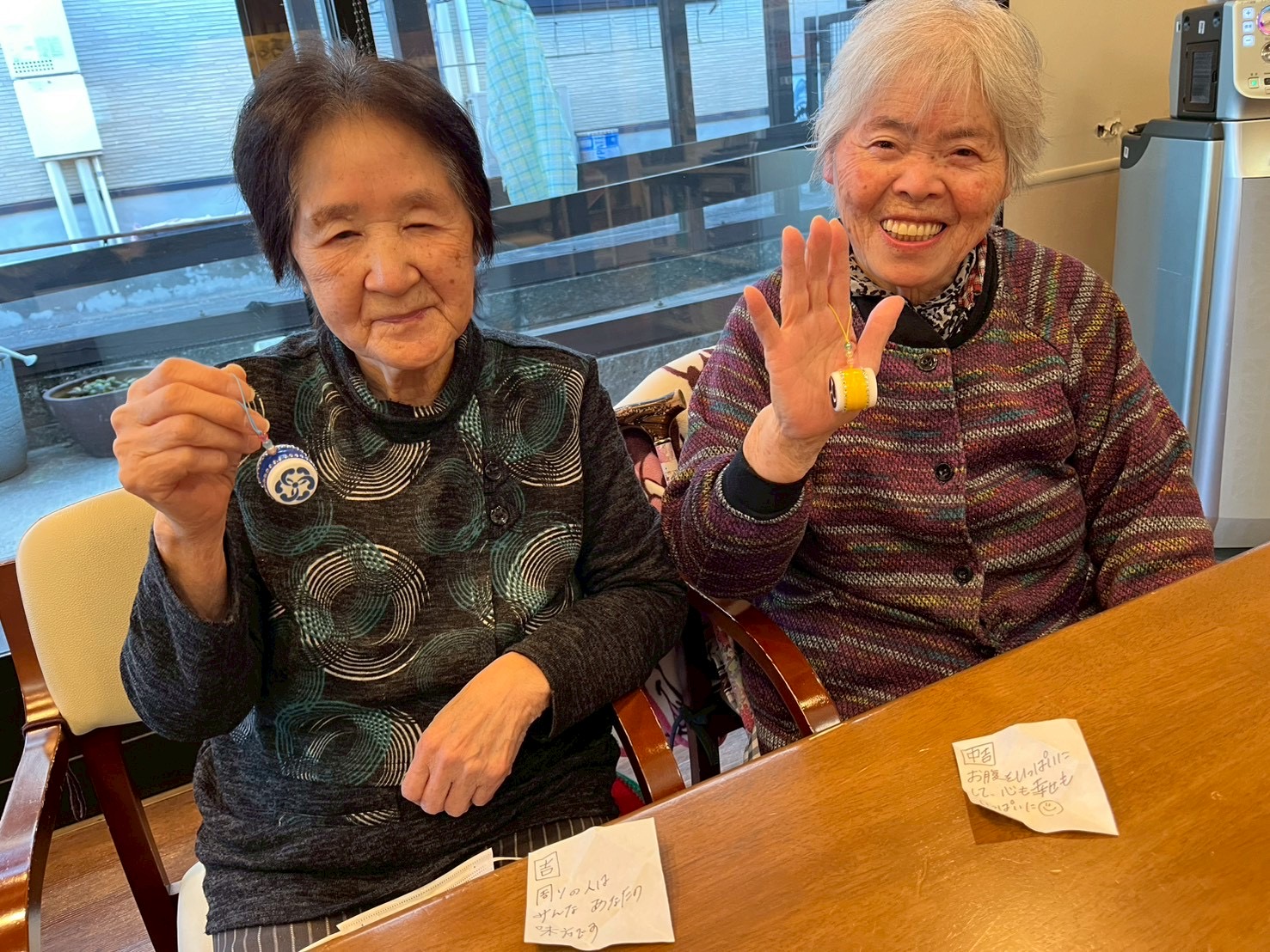 お参り後は、お手製のおみくじを引いて、一枚しかない超大凶を引いた方がみえ、「一枚しかないのに引けたのはラッキーだね」とポジティブに話をされていました。スタッフお手製のお守りを選ばれ、皆さん喜ばれていました。