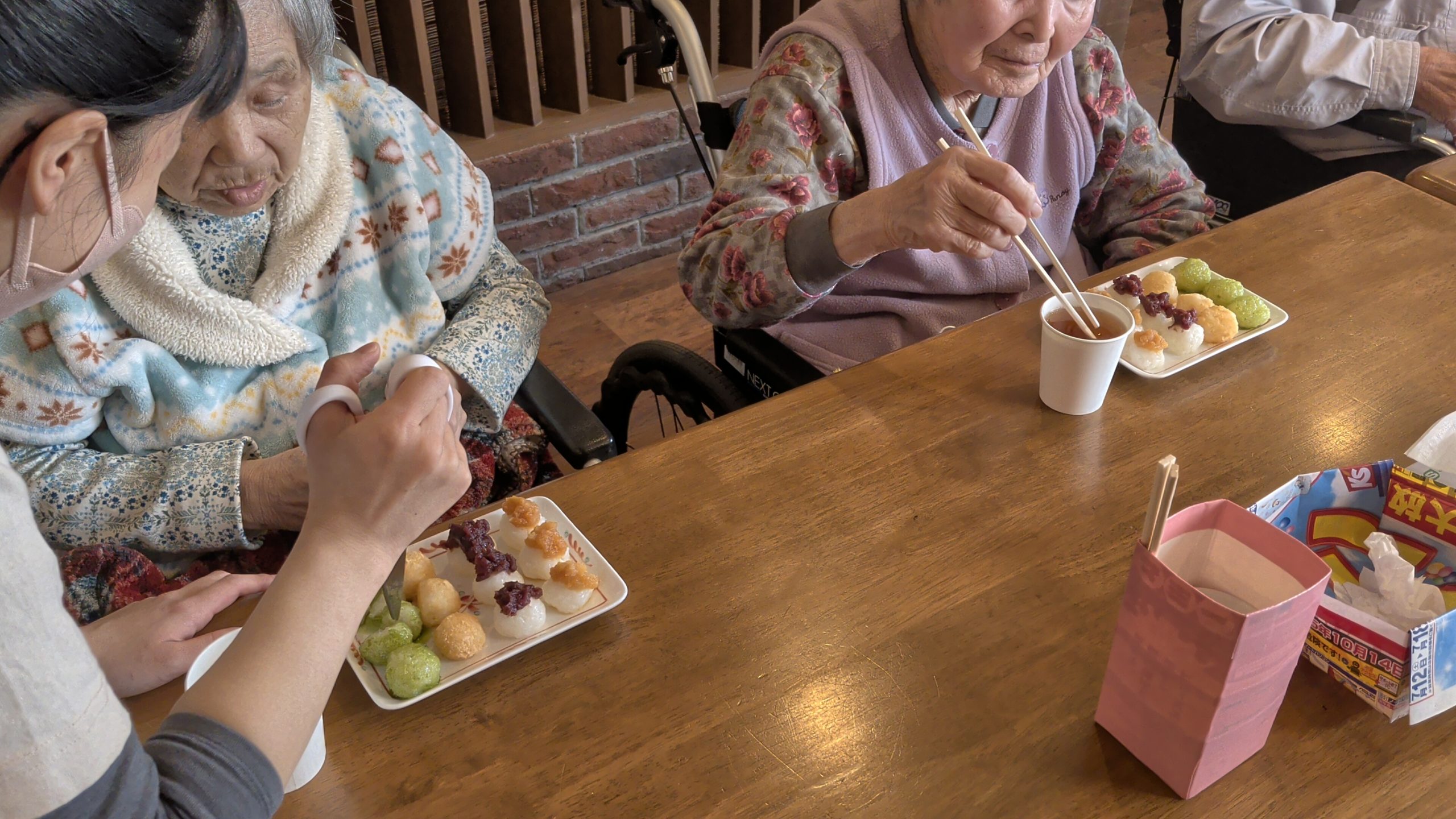 お餅が心配な方は、小さいご飯玉に4種類の味を乗せ提供。こちらも好評でした。