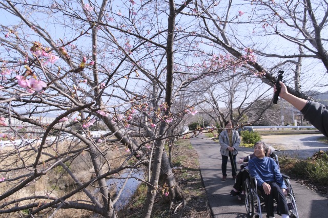 施設外では、川添いに桜が少し咲いていて少しでも綺麗で満開を楽しみにしていました♪