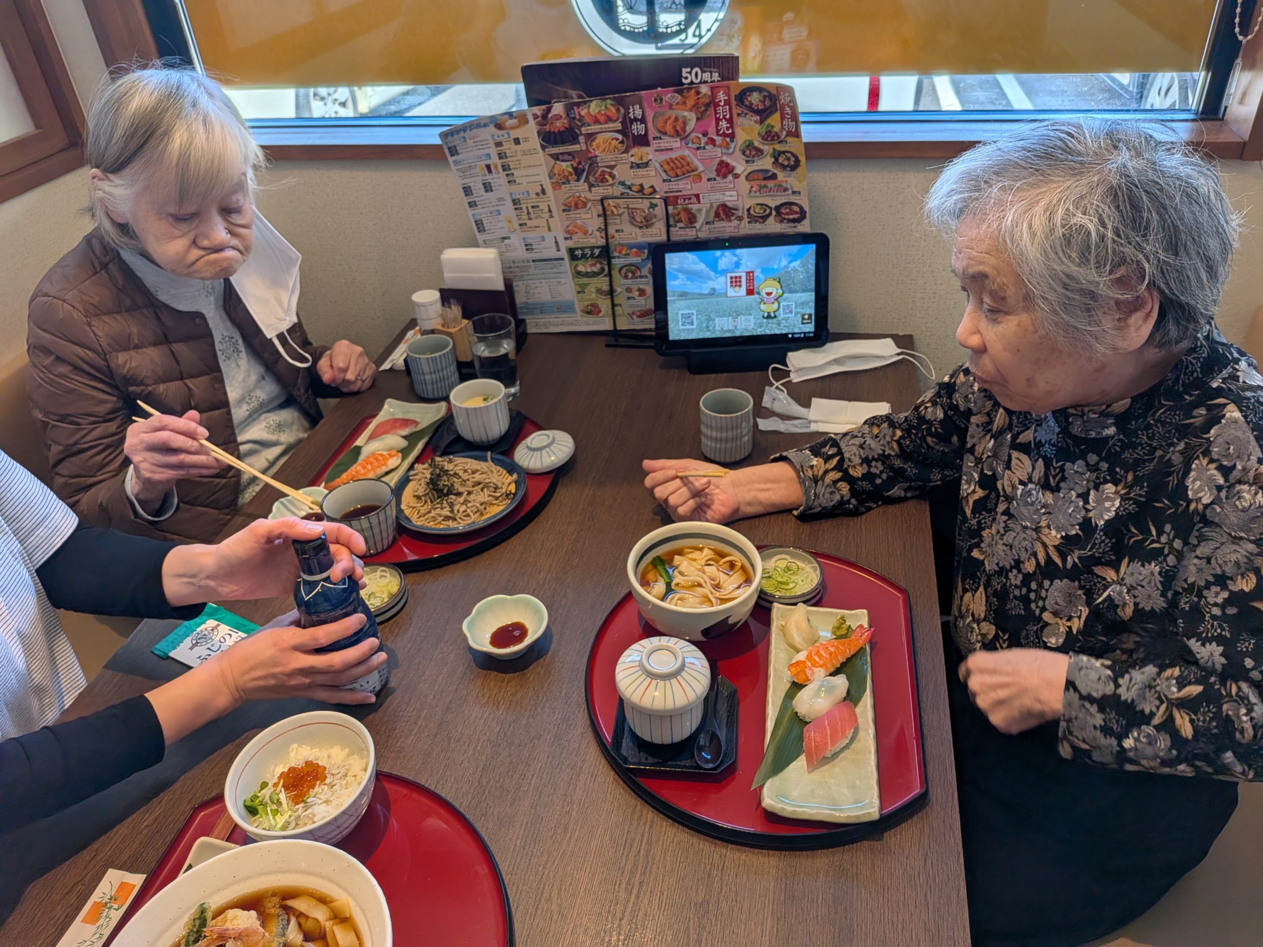 久しぶりの外食に、食欲が見られ、ほとんどの方が完食されていました。何年ぶりのランチ外食でしたが、皆さんの笑顔がたくさん見れました。今後も計画していきたいと思います。